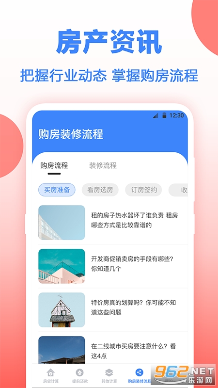 2、房产资讯,紧紧的把握行业的最新动态,掌握购房的流程。