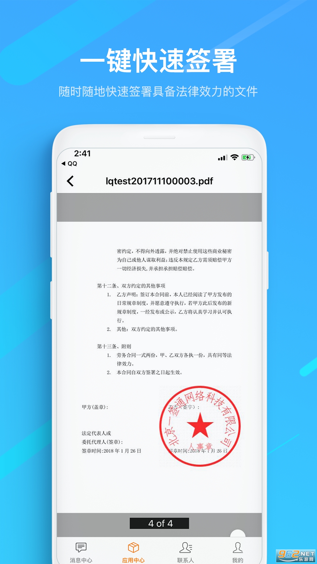 一款好用的pdf文档和电子合同软件,在这款软件中用户可以安全的进行合同签订,软件的操作简单容易上手,对各种文档合同进行盖章和签字,推荐给有需要的用户。