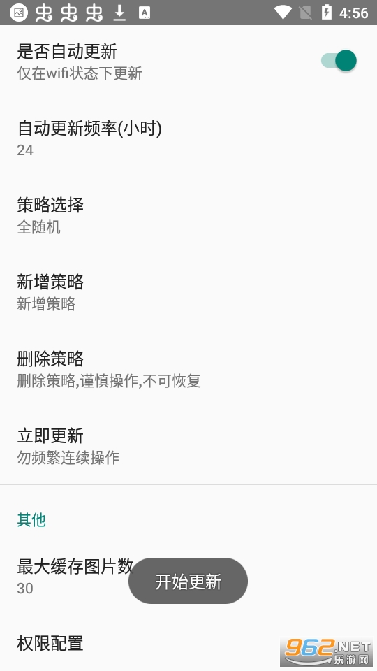 第一次打开,因还没有缓存策略图片,壁纸不会立刻切换,若等待一段时间后,依然无法切换,手动点击《立刻更新当前策略》,手动触发缓存,也可以关闭网络图片,使用自己的目录