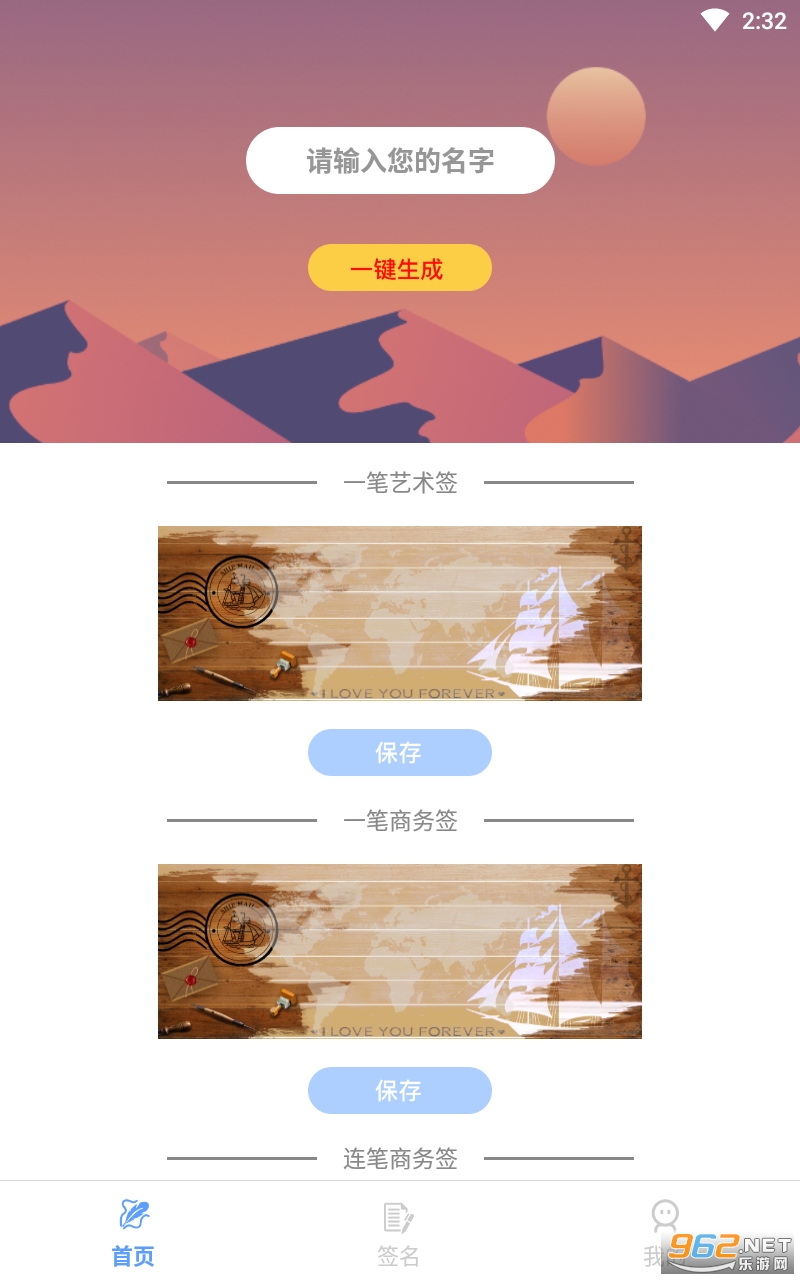 3.一键签名的工具模式设计了良好的背景和主题模式。在线签名工具可以无阈值设计和使用,并且可以随时保存自己的专属签名。