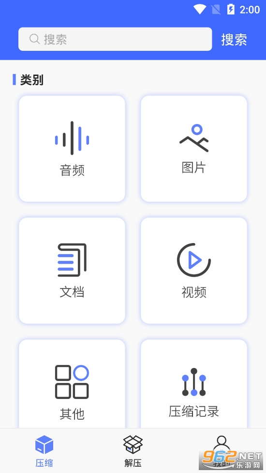 支持五大压缩分类:音频、图片、文档、视频、其他,自动为您查找手机资源,选择需要压缩的文件,智能压缩为zip格式。