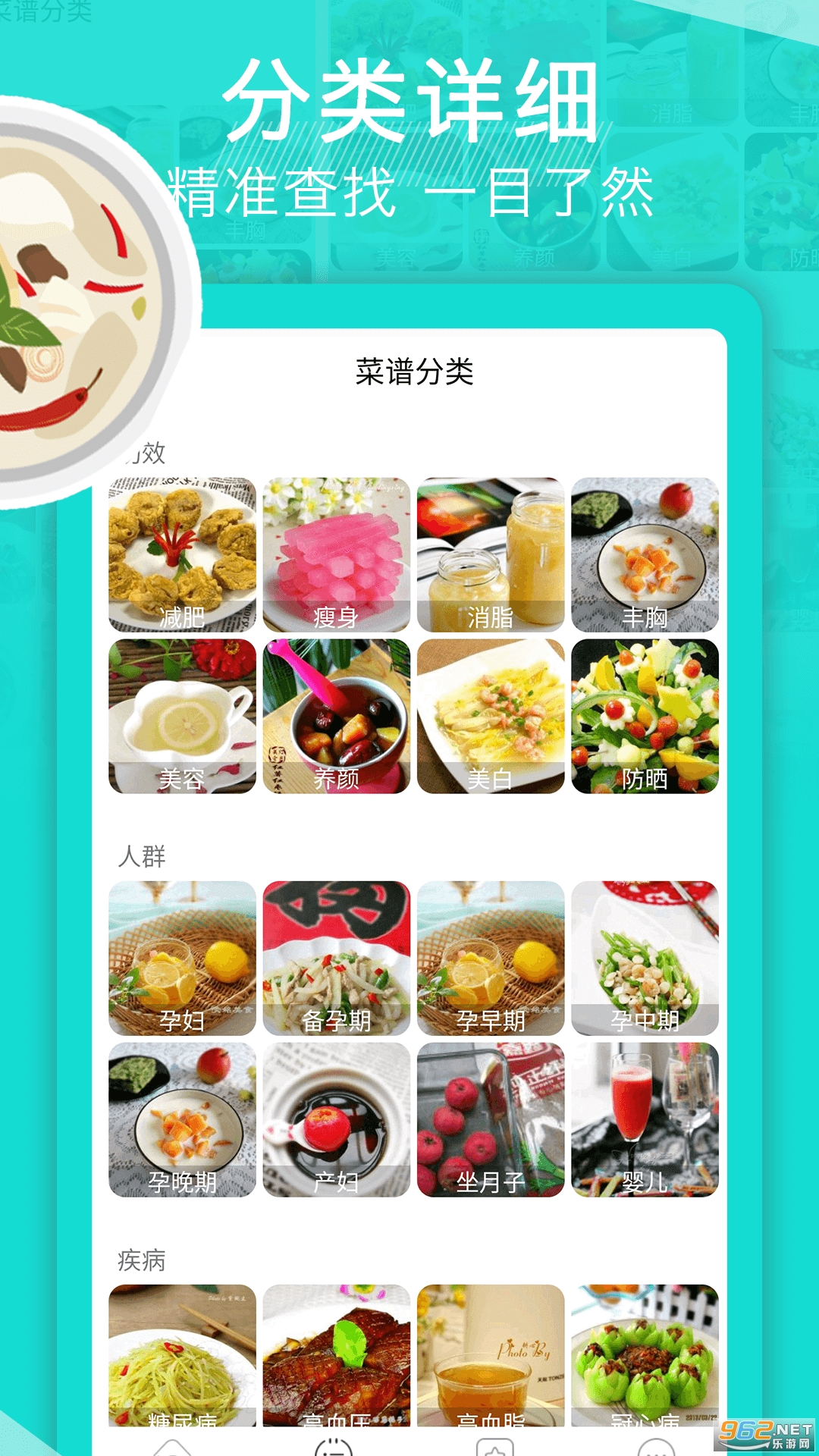 我们将美食天下上百万篇菜谱,结合十多年的运营经验、菜谱大数据,进行了多达14个维度数百种分类。包括家常菜谱、西餐菜谱、烘焙食谱、儿童菜谱,等等。同时我们全新改版搜索功能,无论是菜名还是食材,通过搜索功能,都能直达你的心头好。