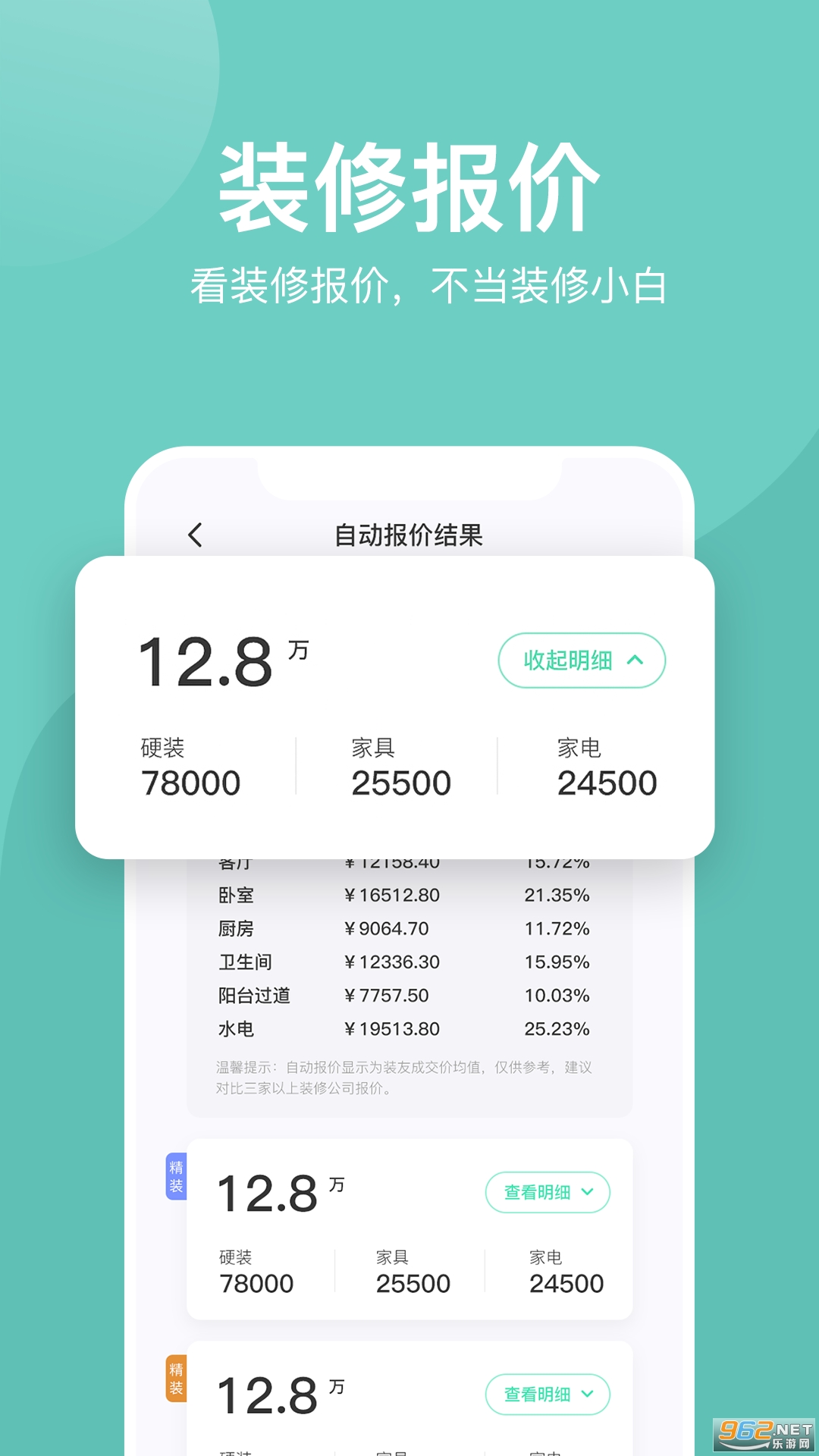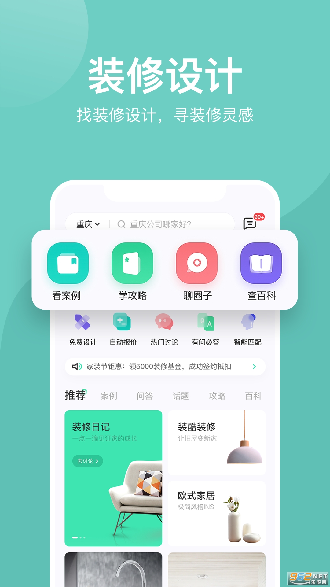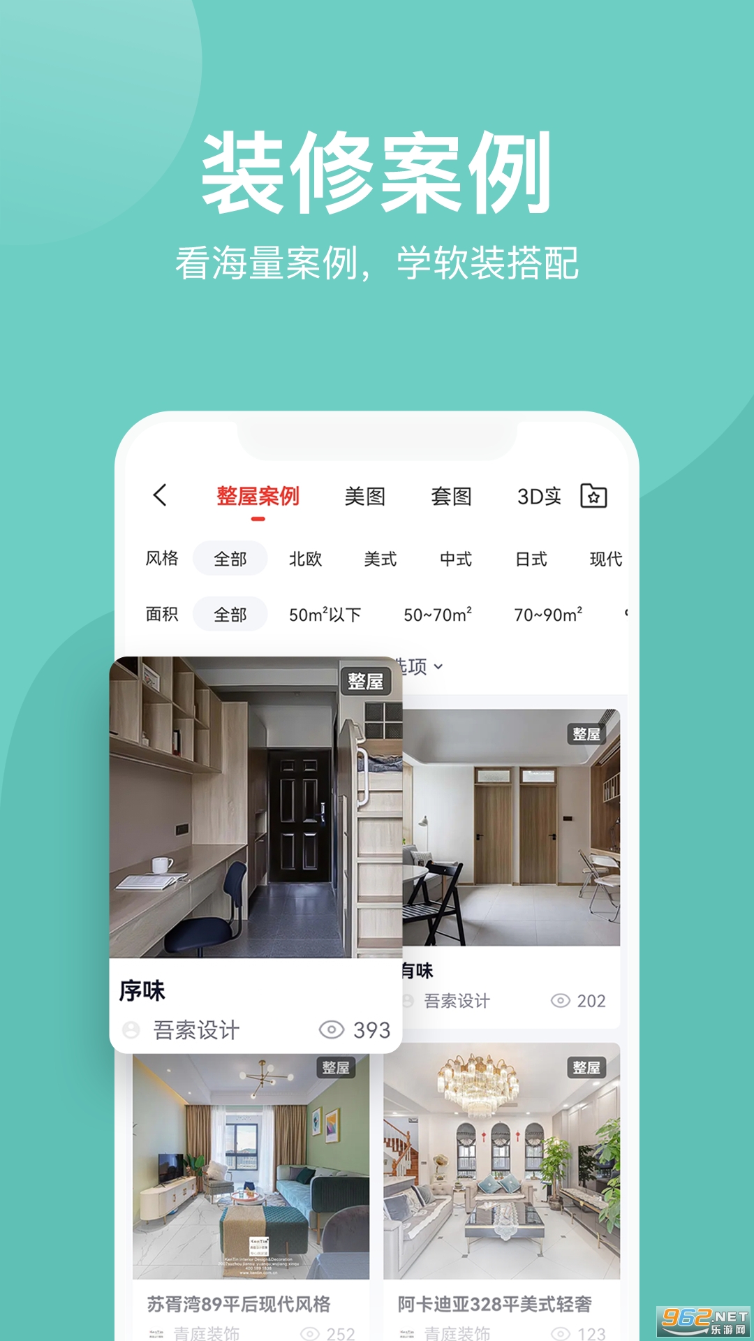 【海量装修美图】 丰富的装修图库,整屋方案,风格样式紧跟时代发展趋势。帮助你发现设计灵感,确定装修风格,打造属于自己的个性化家装效果。