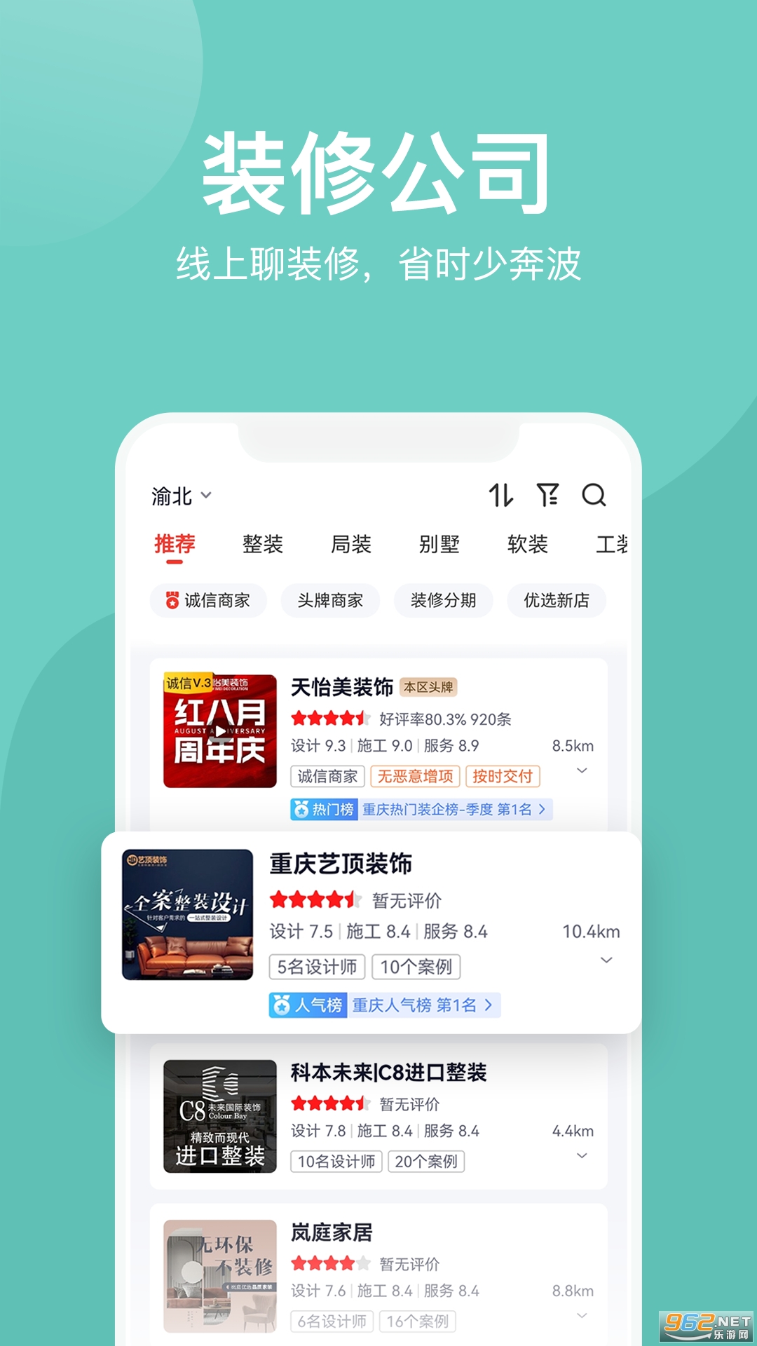 【优质装修公司】 严格筛选装修公司准入标准,根据装修要求,匹配1-3家优质的装修公司免费上门量房,输出多份报价方案供业主参考,业主按设计效果和报装修价进行选择,拒绝报价陷阱。