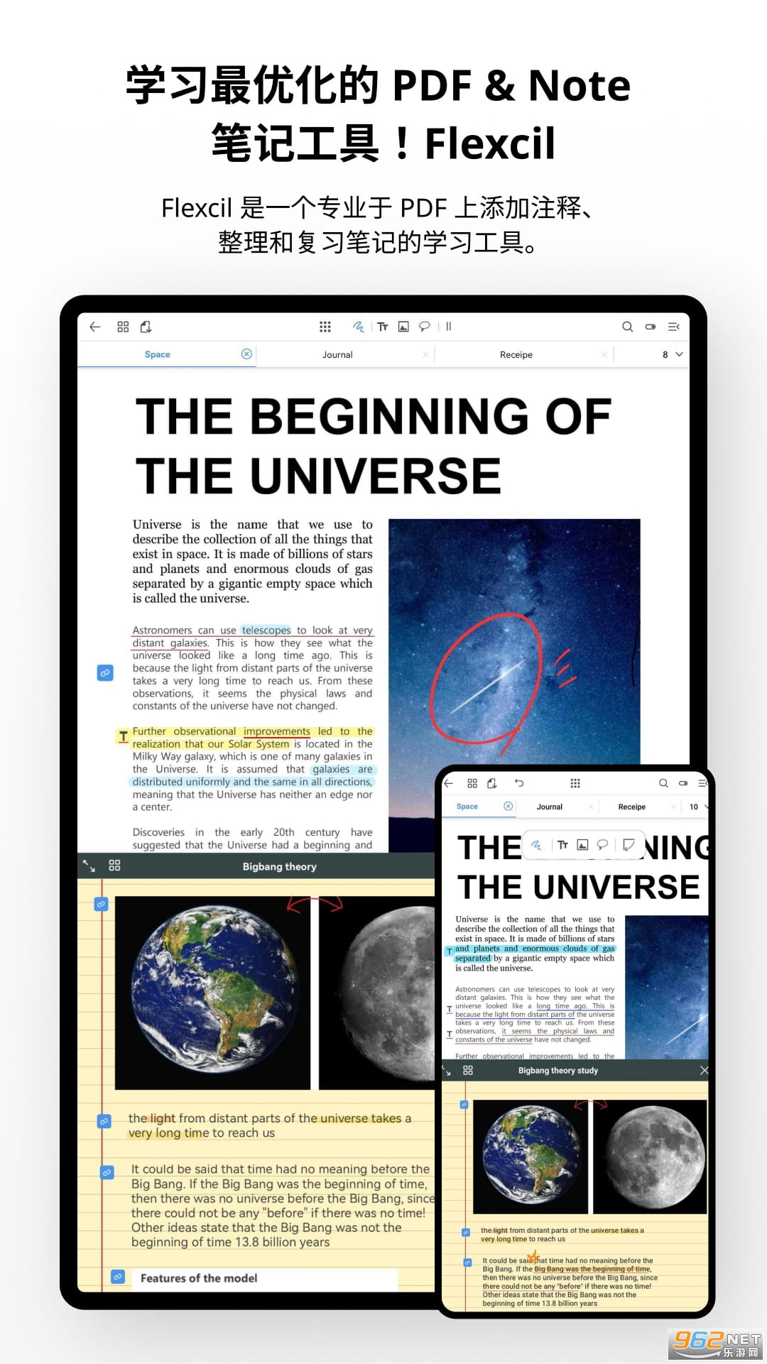 无论是笔记记录、要点归纳、文档阅读还是编辑教材中的页面,您都可以使用 Flexcil!这是适用于一切华为设备的笔记工具。