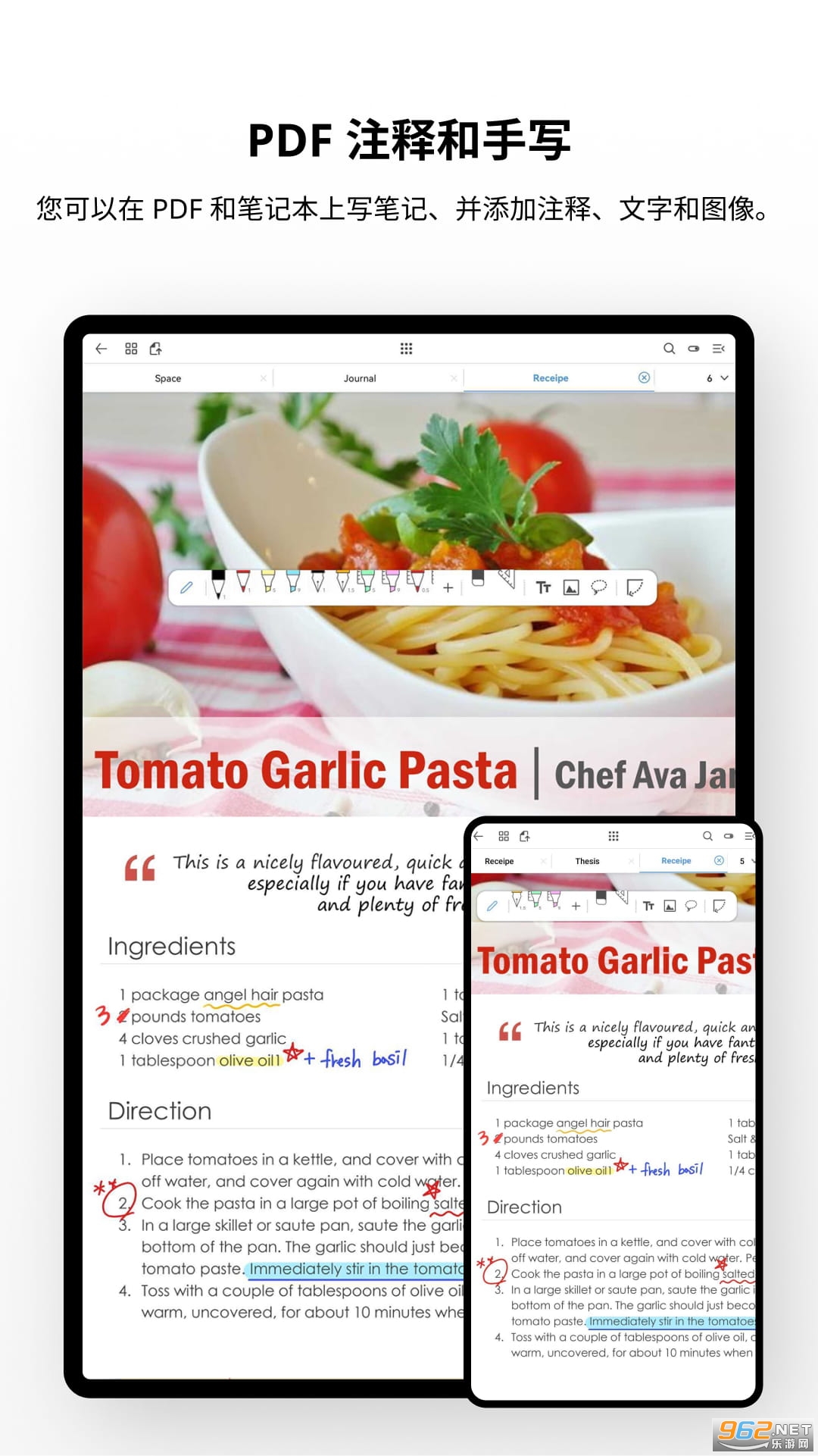 只需使用笔式手势,即可在学习笔记中标记高亮并捕获图像与文本!触控笔或可助您节省学习笔记的摘要记录时间。