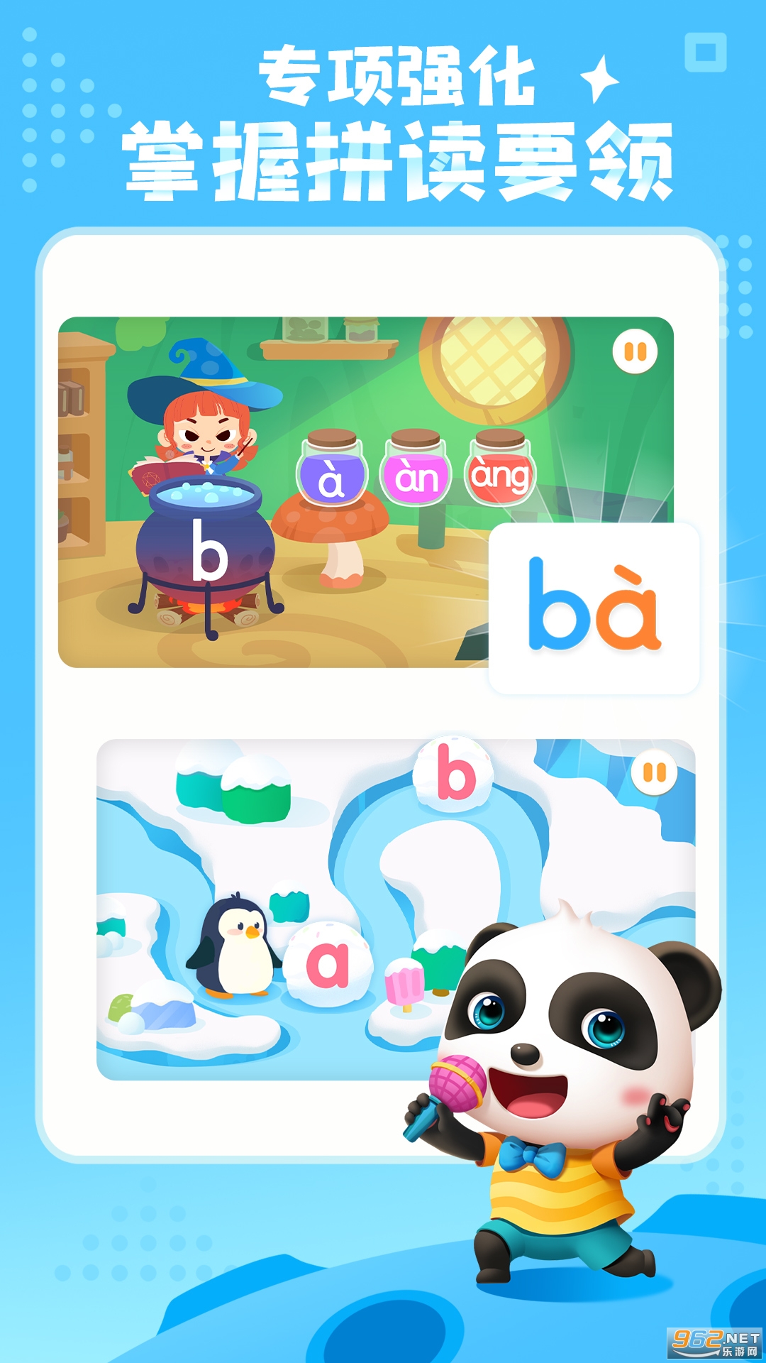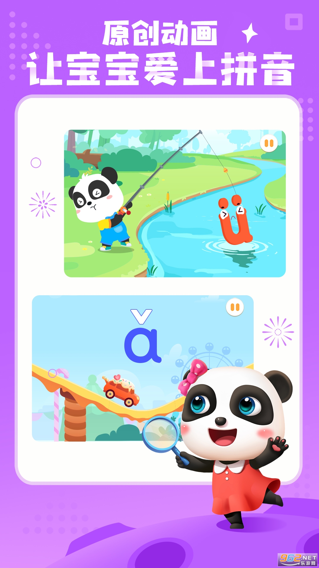 【宝宝拼音乐园】内拥有60节拼音启蒙动画,情境式演绎,认读调写拼练,全方位认读拼音;