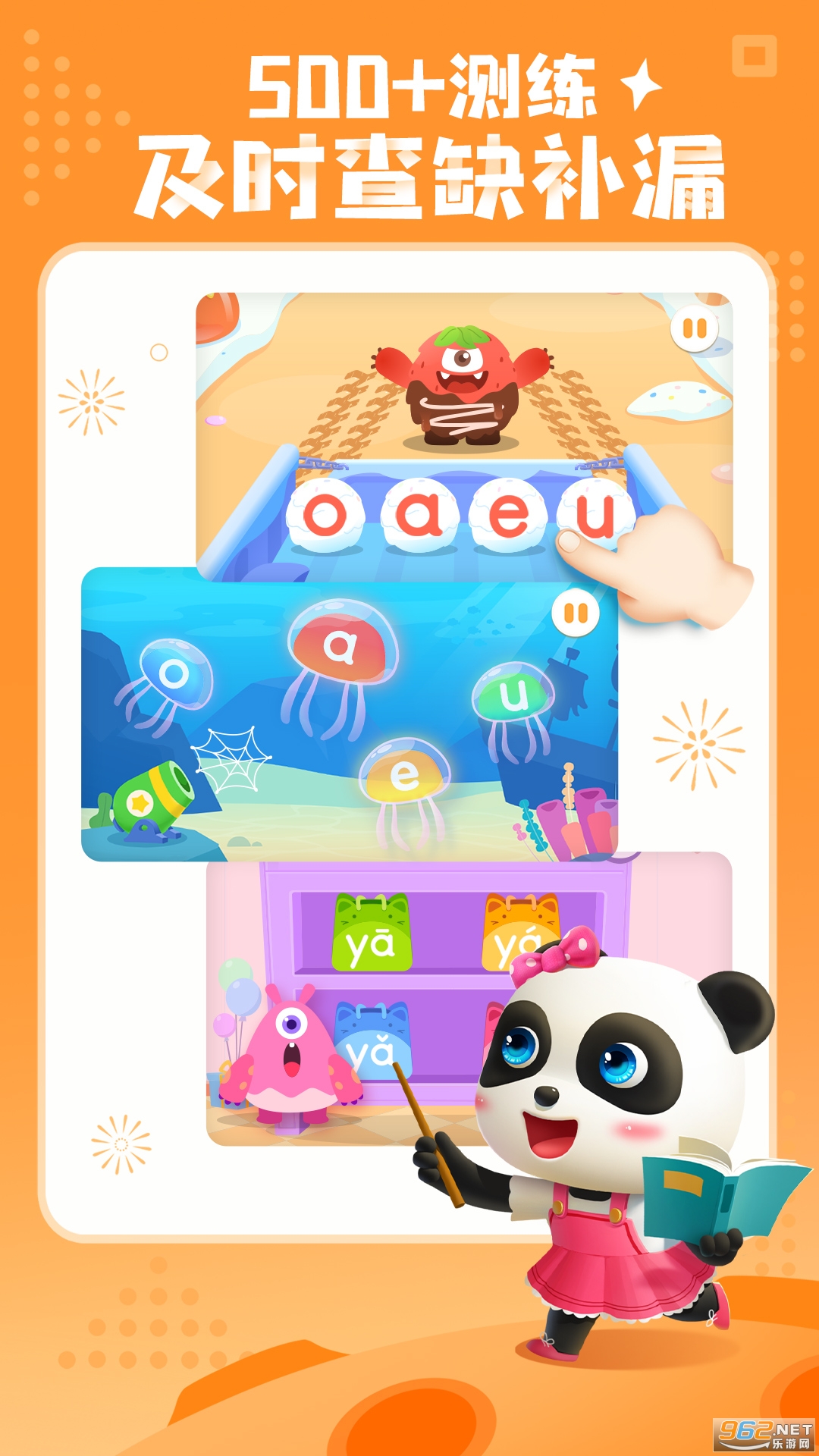 提供500+个趣味检测,帮助宝宝有效率地复习拼音重难点,巩固拼音知识,提升宝宝认读拼音的兴趣。