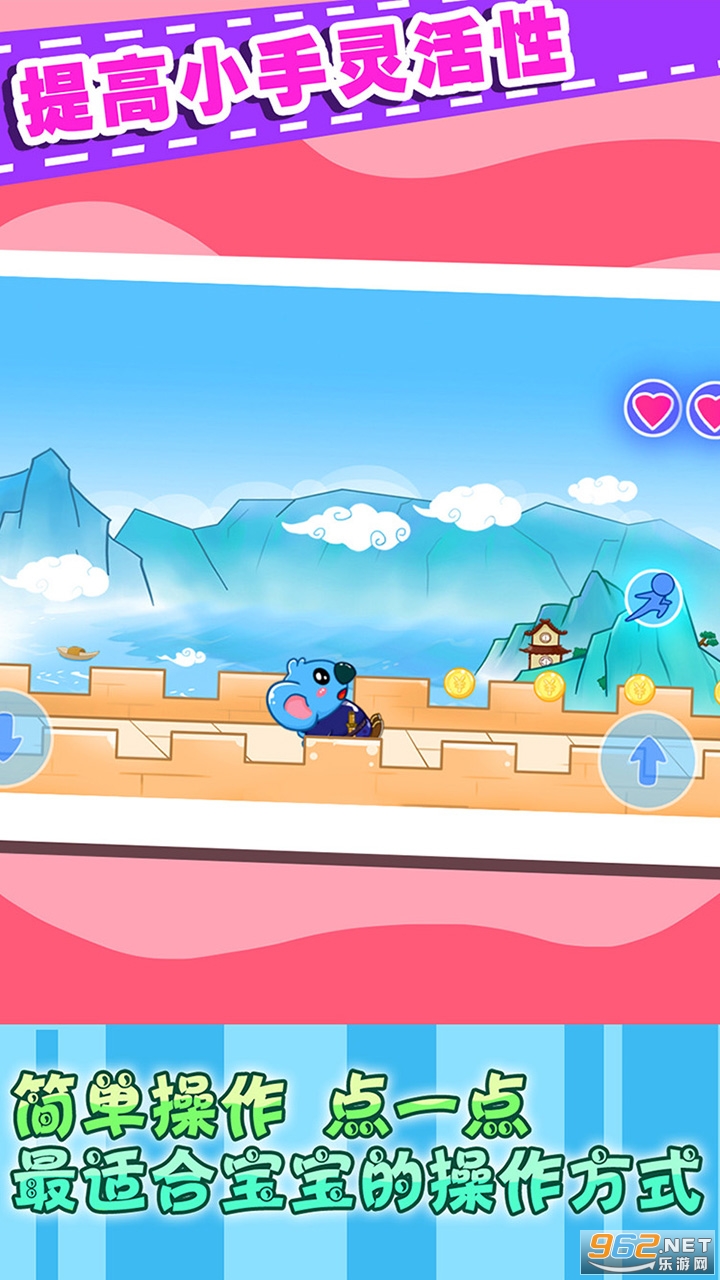儿童宝宝历险记是根据现在市场流行的跑酷游戏而专门为小孩设定的小游戏。游戏里面有精彩的画面,流畅的动作。让小孩双手合作发挥更佳的协调能力。能有一种让小孩身临其境的感觉。游戏的主角是一个考拉侠士在拥有中国风的场景里各种穿梭,让你的小孩从小都有狭义心肠。简单的操作和丰厚奖励会让小孩更加的喜欢这款游戏。