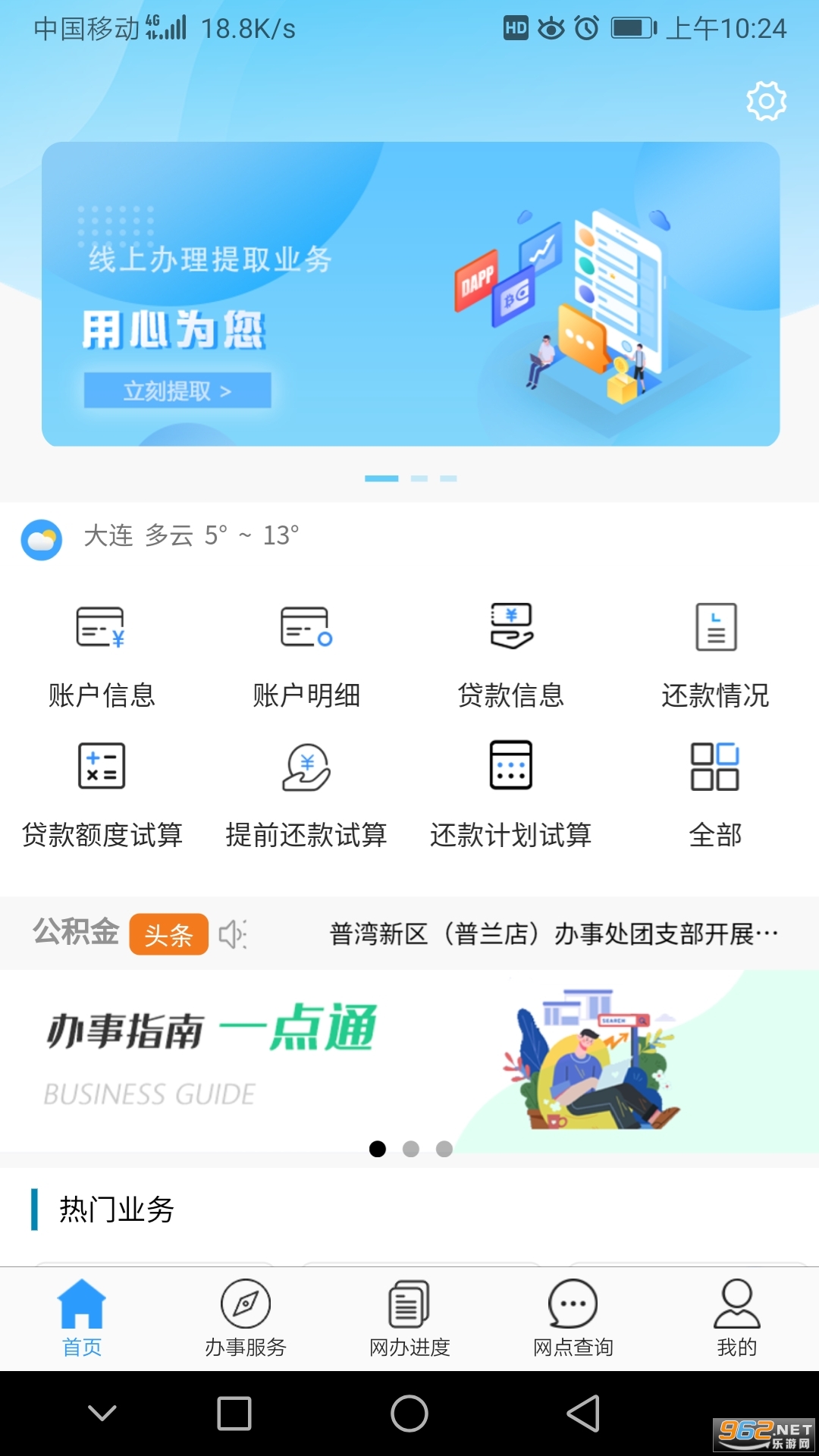 大连公积金手机客户端,集公积金账户查询、贷款情况查询、公积金提取、贷款还款等主要功能为一体,可以随时了解公积金资讯、查询公积金业务指南。