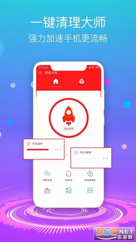 智能清理:一键智能清理手机无用垃圾、加速手机运行速度