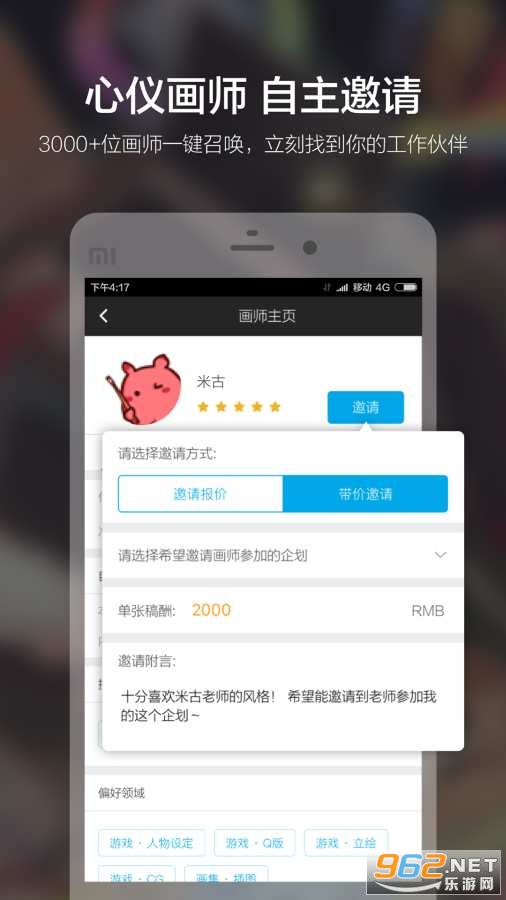 1、企划方可以自由地邀请画师、选定画师了!出门在外也能轻松锁定合作伙伴,迅速开启你的完美合作。