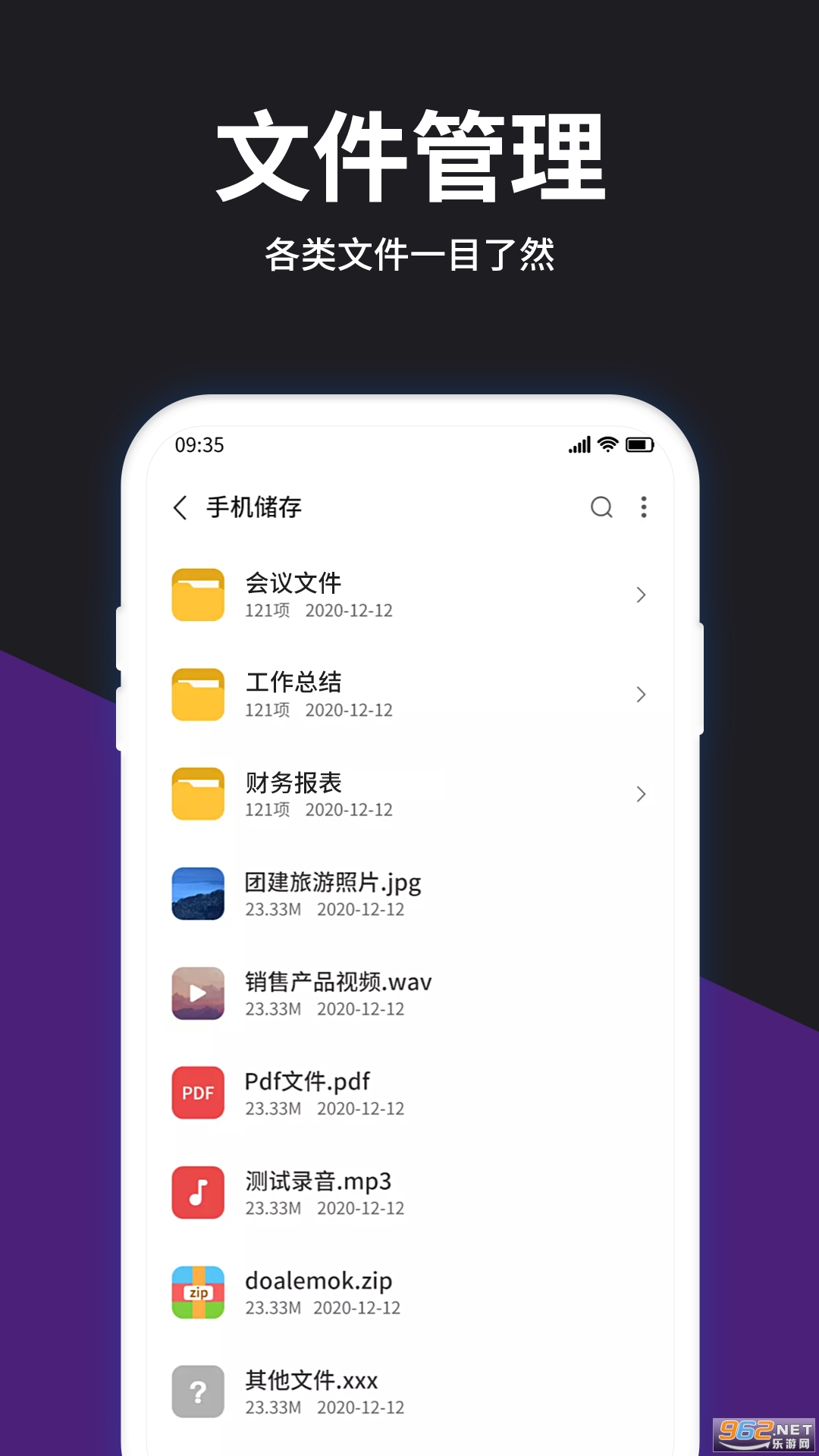 支持文件图片、音乐、视频、日常办公文档等几十种类型文档浏览;
