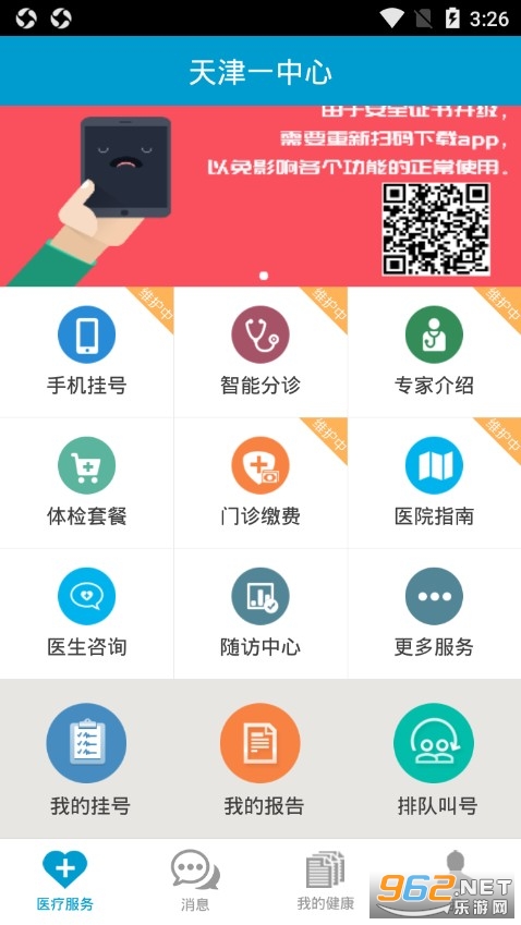 --预约挂号、当日挂号、挂号支付、报告查询、排队叫号、