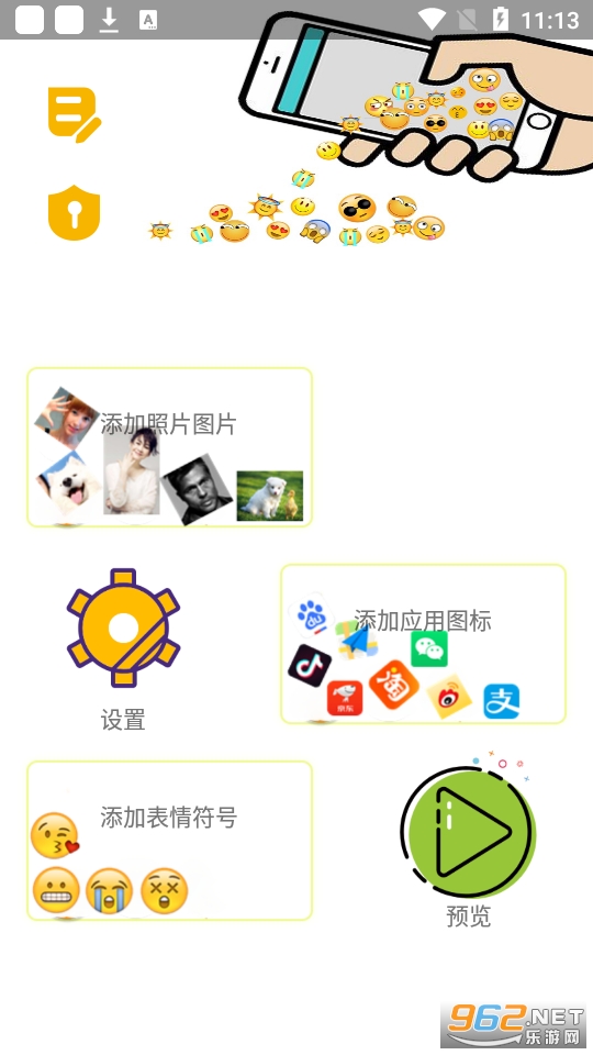 2、支持应用图标、表情符号以及本地图片等添加;
