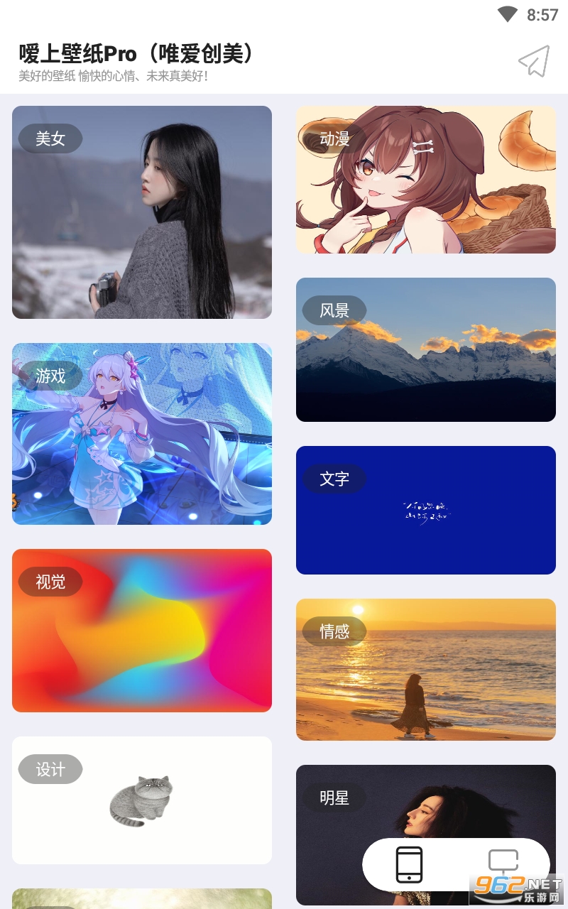 动漫、游戏、明星、风景、世界杯、花卉、建筑、星空、沙漠、海洋、萌宠、美食超多种分类随心订阅。