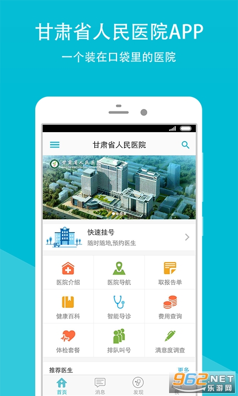 《甘肃省人民医院app》给甘肃的人民带来了一款实用的医疗健康平台,大家在这里可以灵活预约挂号,再也不用去医院扎堆漫长等待,专家门诊直接预约,让各位用户们可以在这里享受到更加好玩优质的医疗服务,下面就是小编为大家带来的软件下载地址!