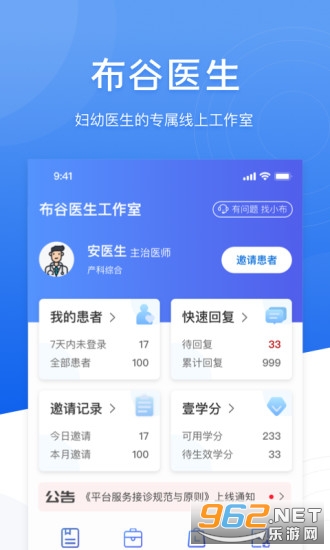 通过布谷医生,您可以高效率地对患者用户实现病患管理、智能随访、健康数据管理、即时咨询以及免费使用各种专业工具为妈妈提供育儿问题一站式解决方案,打造您的专属线上医生工作室。