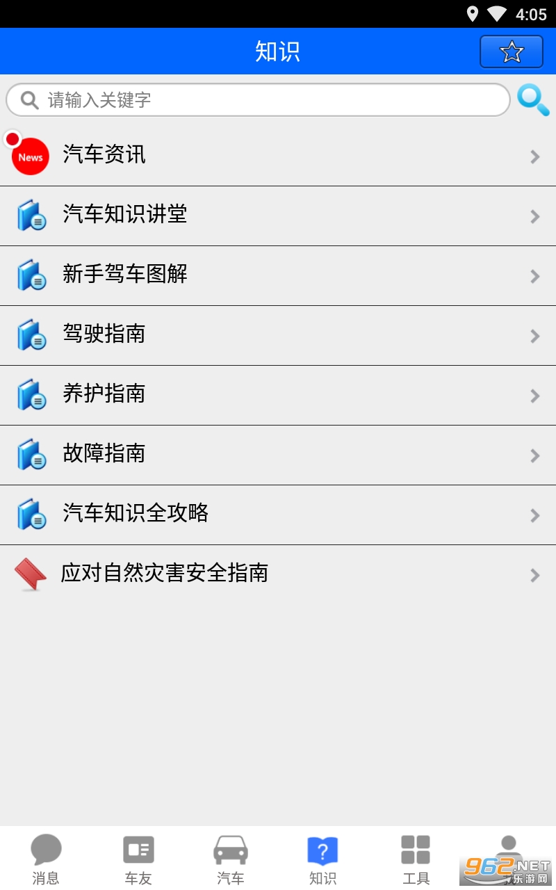 3.汽车知识,汇集汽车入门知识,新手驾车图解、驾驶指南、养护指南、故障指南、汽车知识攻略、安全手册等。