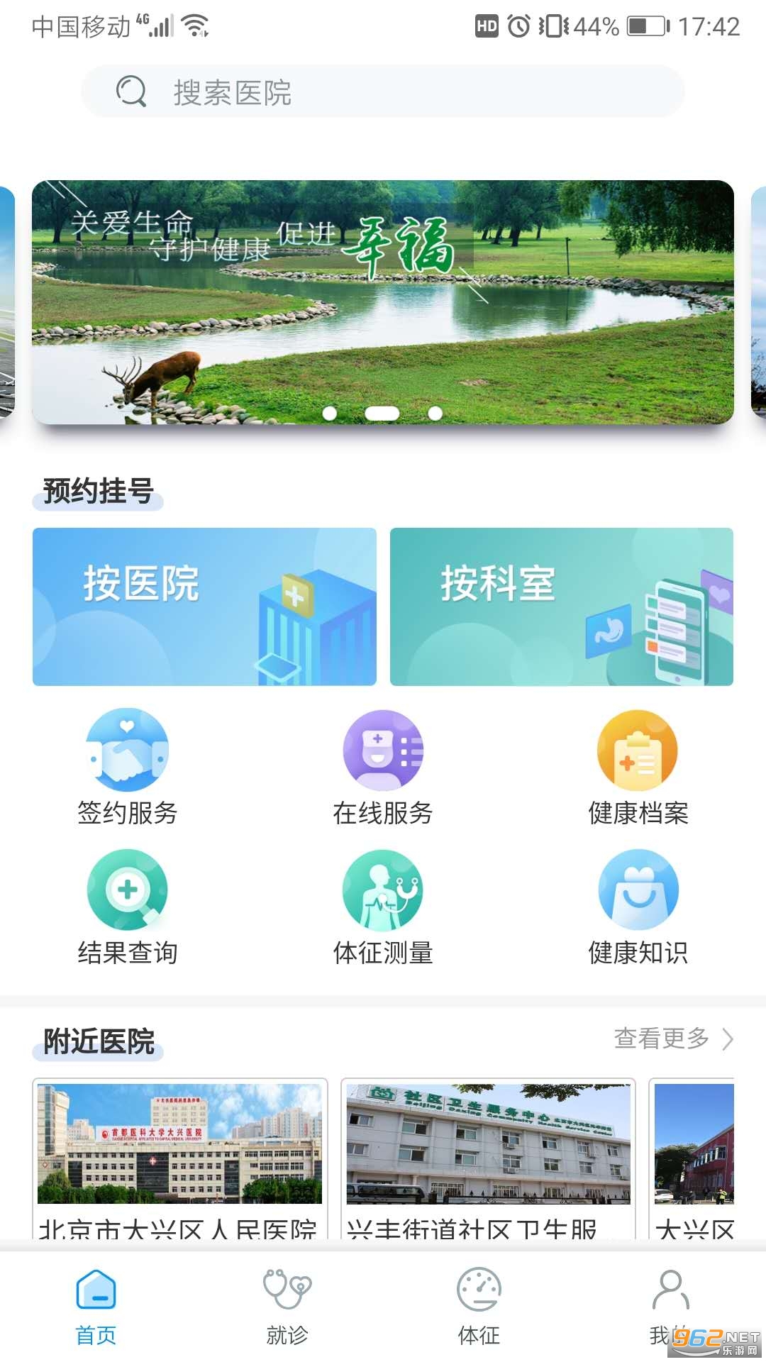 健康大兴APP,可向辖区百姓提供预约挂号、签约服务、健康档案、结果查询等功能。