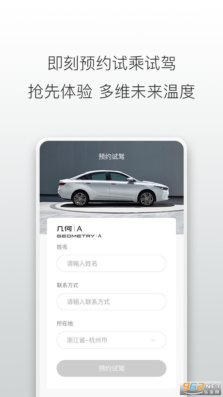 几何汽车是吉利旗下全新全球化高品质的新能源汽车品牌。打造线上官网与线下体验中心相结合的全景式服务。app为车主提供智能网联车控功能,可实现车辆状态监控,远程操控,无钥匙进入功能。同时为准车主提供信息查询,车辆预定,试乘试驾预定等功能,并提供时时在线客户顾问服务