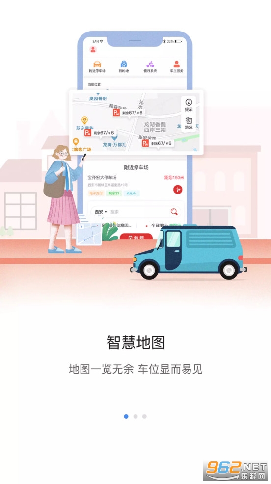 1、在软件中,有为用户提供的智能地图的相关功能,可以帮助用户对于地图中的所有车位信息进行清楚明了的预览,为用户提供了很多便利。