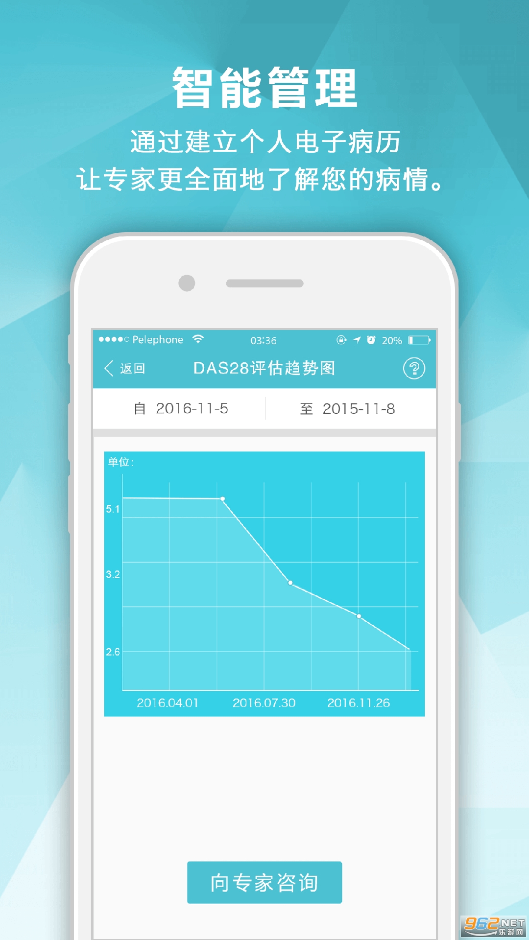 《风湿中心》是手牵手智能疾病管理系统的患者端,这款软件是针对慢性疾病患者自我管理开发的医患互动系列应用软件,与之对应的还有医生端的风湿专家,这款软件主要的功能有用药管理、自我评估、医患沟通等各种功能,可以让患者朋友们更好的治疗风湿疾病。