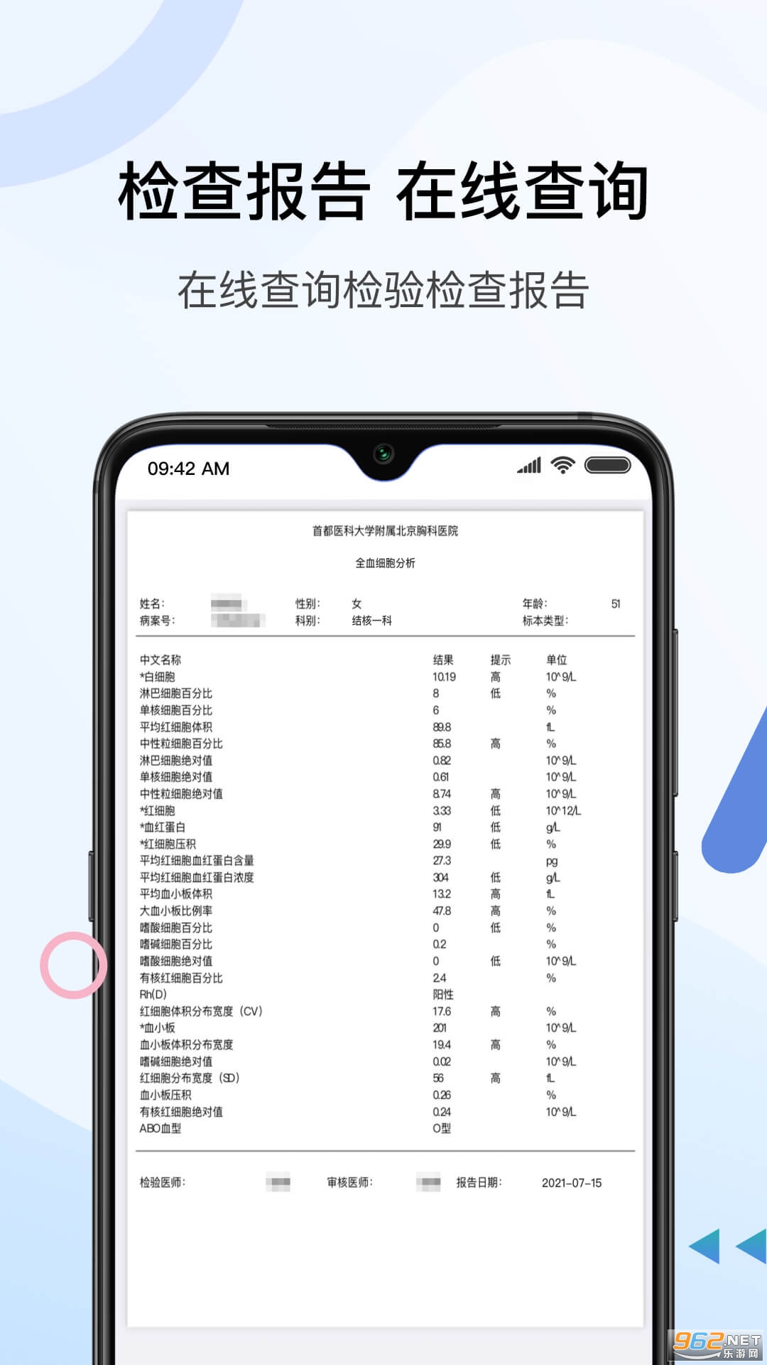 报告查询:在线查询检验检查报告;