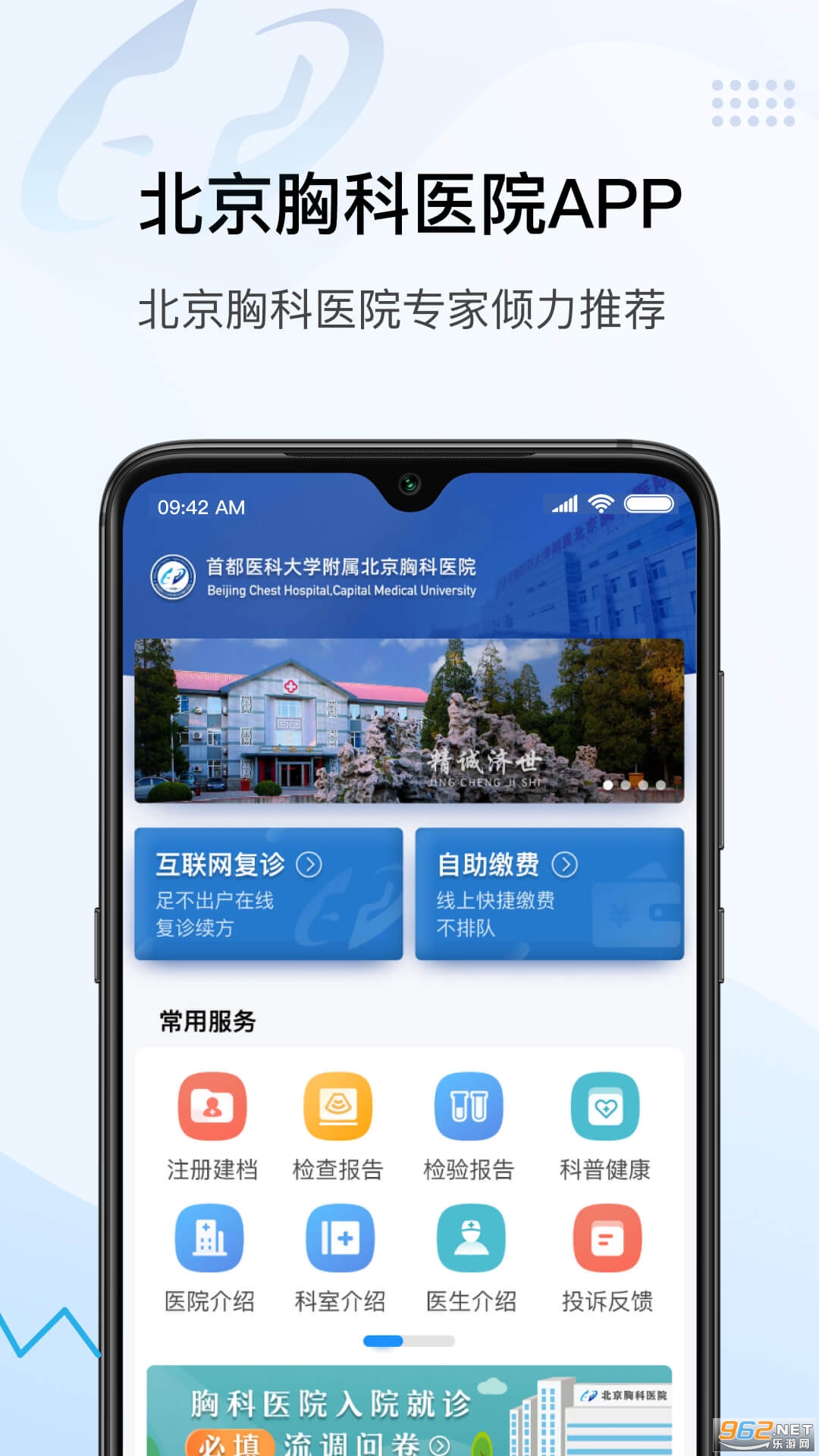 北京胸科医院为方便患者就医,推出官方app,以提供更好的就医服务和体验为目标,让患者找专家看病不再难,足不出户就可以获得可靠、便捷、高效的医疗服务体验。