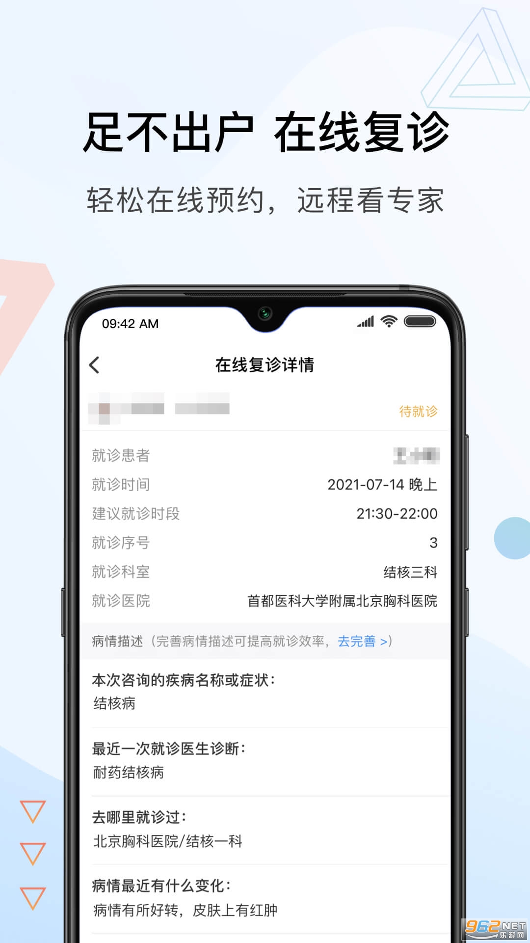 在线复诊:轻松在线预约,足不出户即可远程看专家;