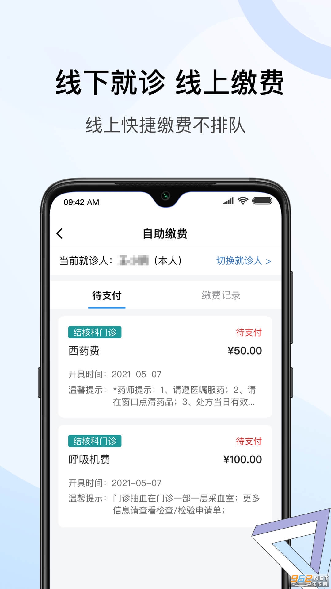 在线缴费:在线支付门诊、在线复诊、处方等费用;