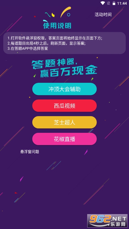 1、全民参与的有奖问答游戏百万英雄火热上线,答题赢现金。