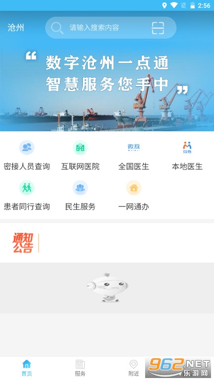《智慧沧州(防疫健康码)》是由江苏腾奕网络技术有限公司开发,旨在为沧州当地人民的日常生活带来更加多的方便的一款生活类服务软件,使用者们可以使用手机app在线查询个人公积金、养老社保,水电费缴纳、沧州政务服务资讯等多项服务,需要的朋友们快来962乐游网下载吧。