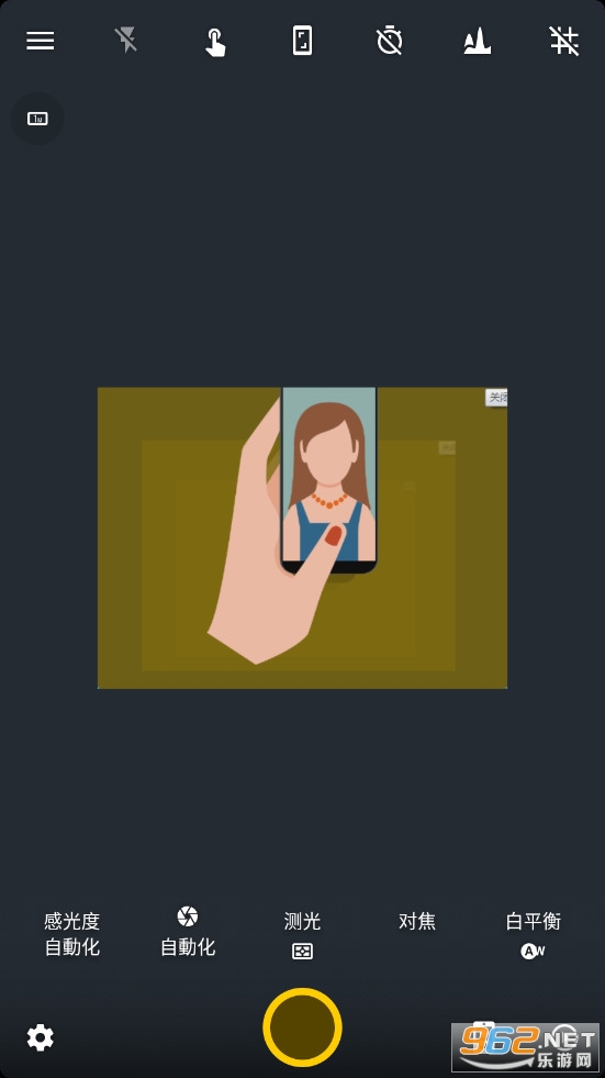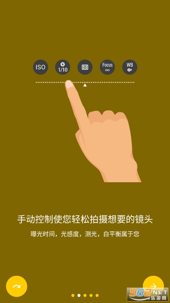 所有的相机功能分配给音量键。您可以调节曝光,ISO,色温和更多使用音量键。此外,还支持硬件拍照快门键设备。