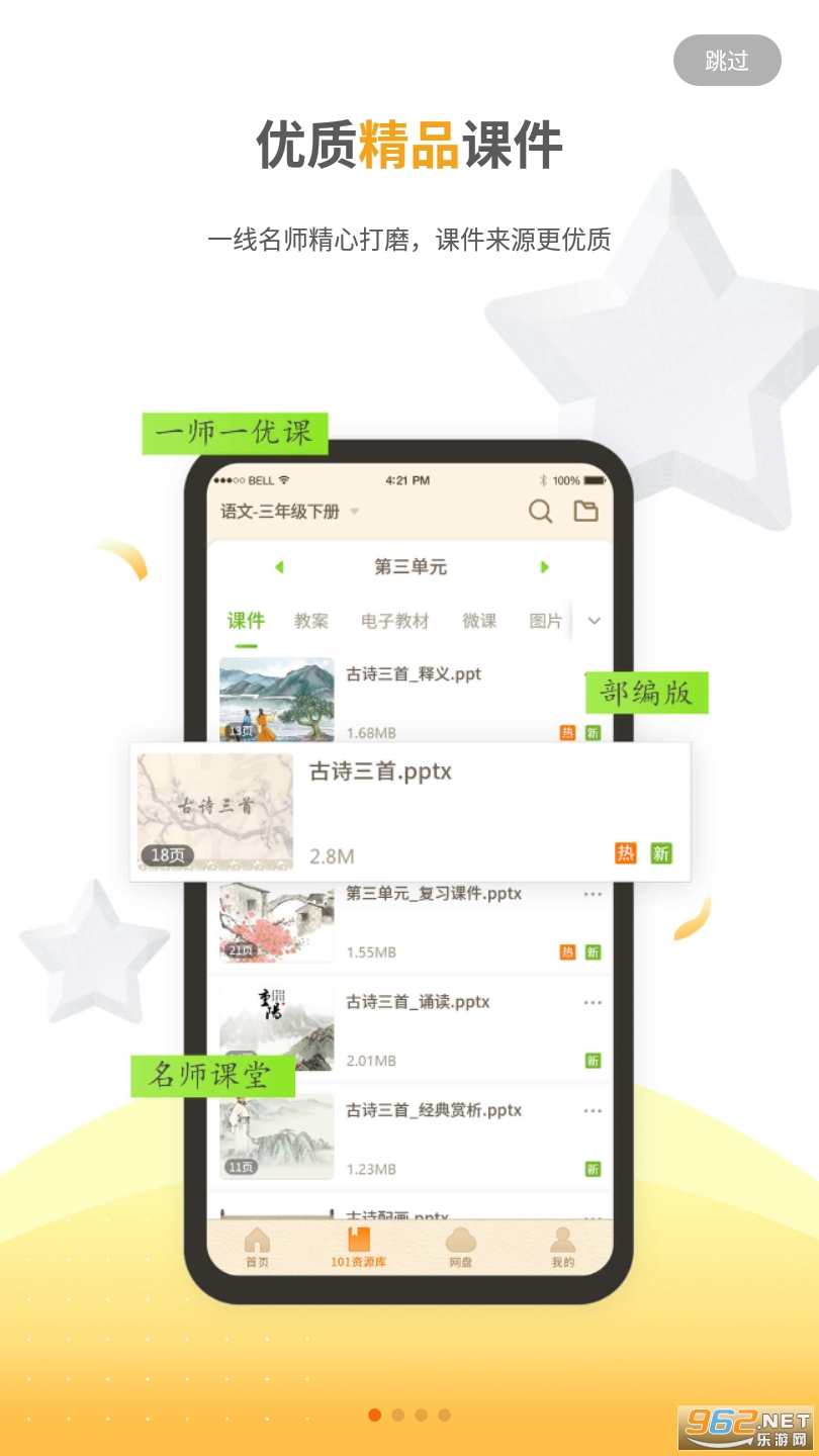 101教育PPT,口袋里的教学资源百宝箱,老师们的备授课助手。