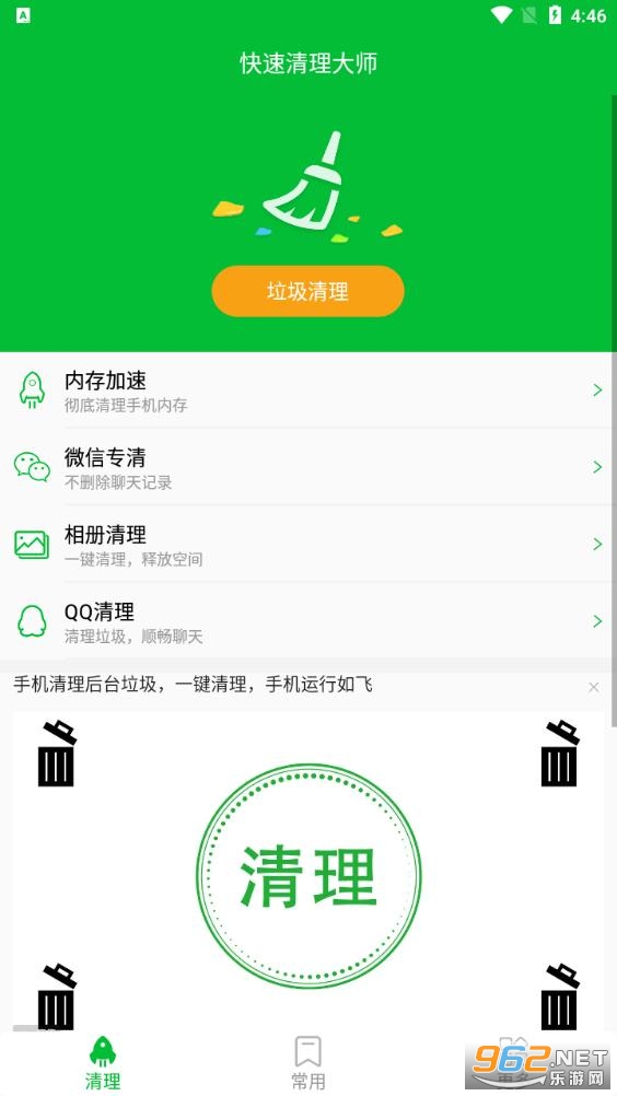 快速清理大师,一款专注于安卓手机清理内存加速优化软件,一键清理手机垃圾文件,有效解决手机使用过程中的一切卡顿、耗电、内存不足等问题。