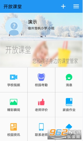 学校视频:可以在线观看班级摄像头画面,支持发送消息与家长聊天;