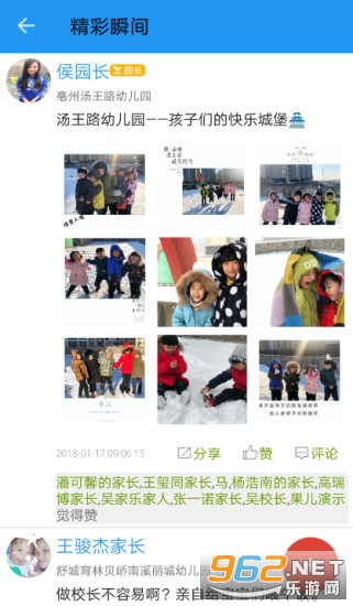 精彩瞬间:可以查看老师发布动态信息,支持在线点赞、评论、分享;