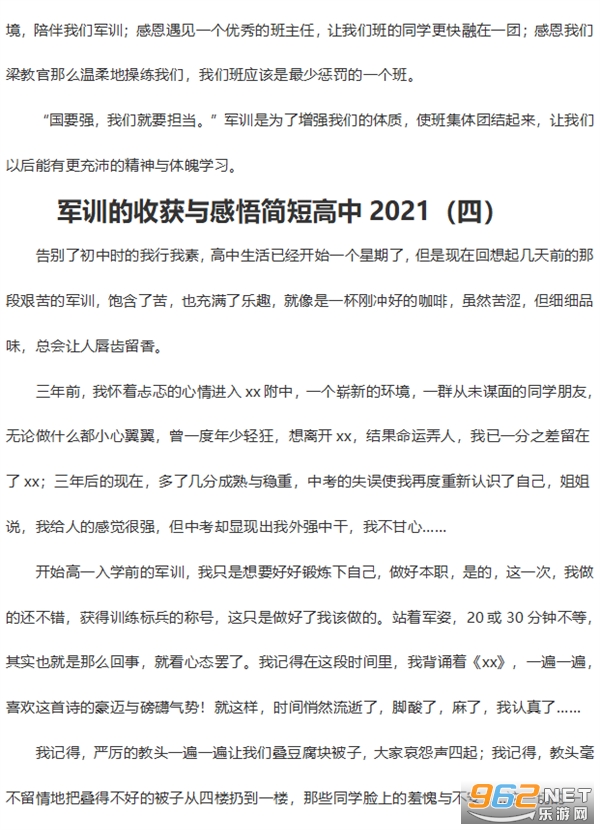 军训的收获与感悟简短高中2026(四)