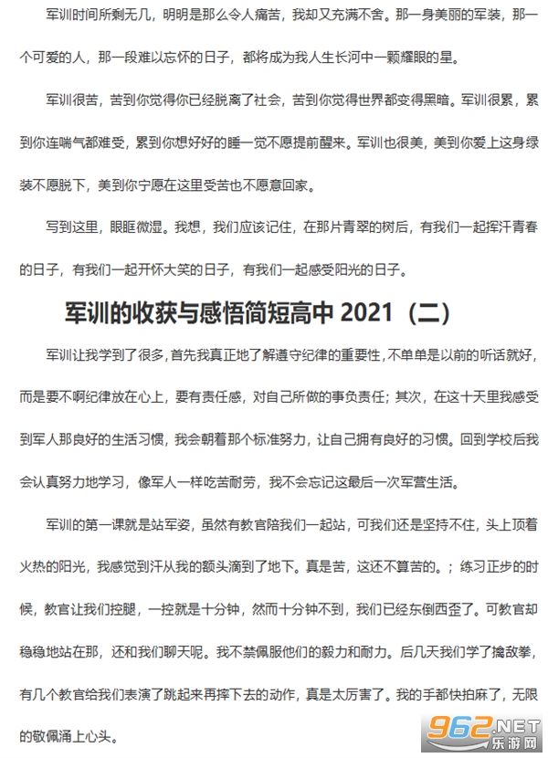军训的收获与感悟简短高中2026(二)