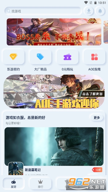 比较好用的一款资源分享软件,在这里你能够找打许多时下话题关注度以及玩家口碑爆棚的多款手游,如果你之前有关注的游戏因为价格而没有购买的话,在AOE手游平台中进行购买的话,是能够享受游戏福利折扣的,能够帮你节省不少的钱!