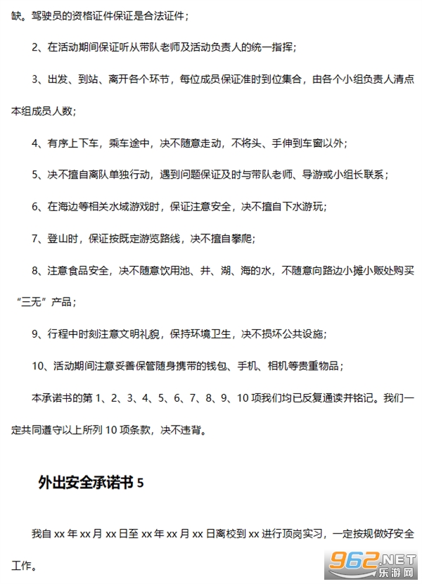 外出安全承诺书5