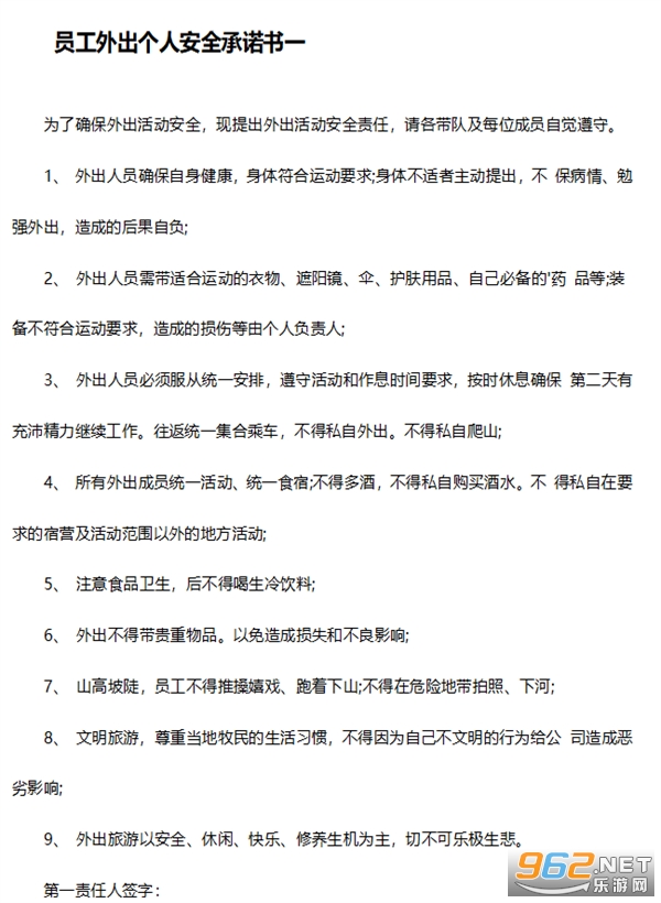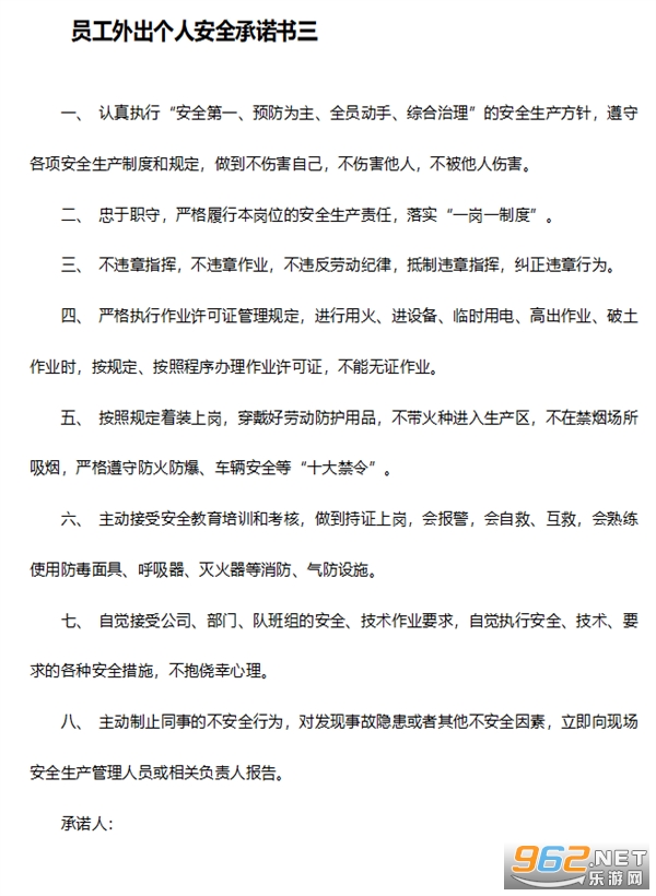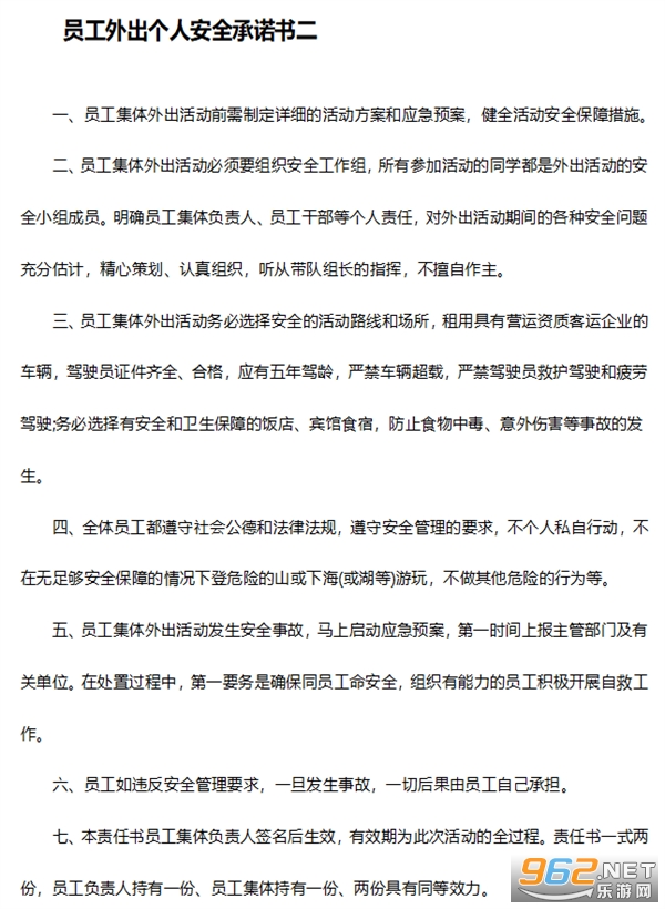 《员工外出安全责任书》中为大家带来3份比较详细的外出个人安全保证书模板,对外出活动进行承诺与保证,确保员工的个人安全问题等。大家可以根据具体的情况进行修改,有需要的话就快来下载吧!