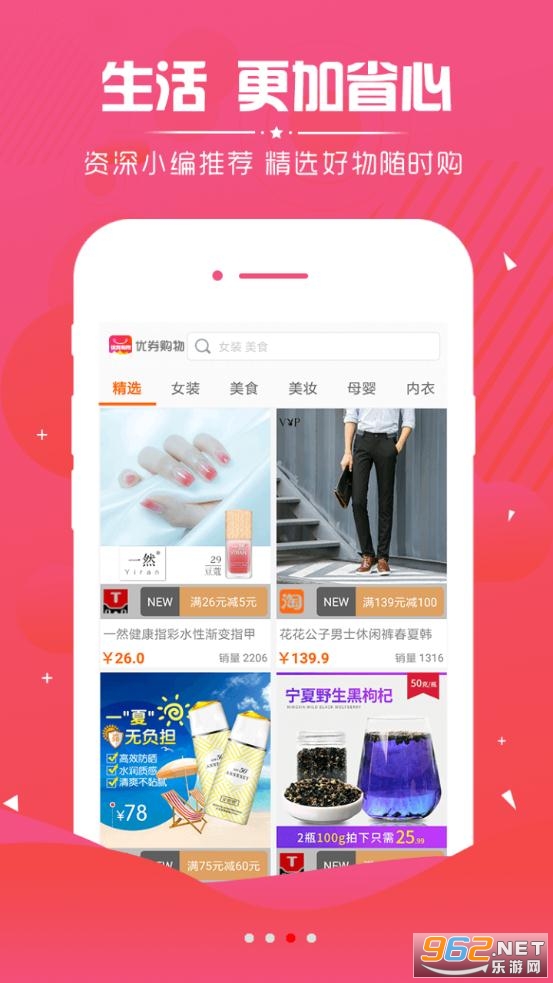 优券购物app为你免去搜索优惠券的时间,我们的运营和强大的后台算法每天都会为你筛选物美价廉的商品,让你天天享受双11的价格,是网购省钱必备神器。