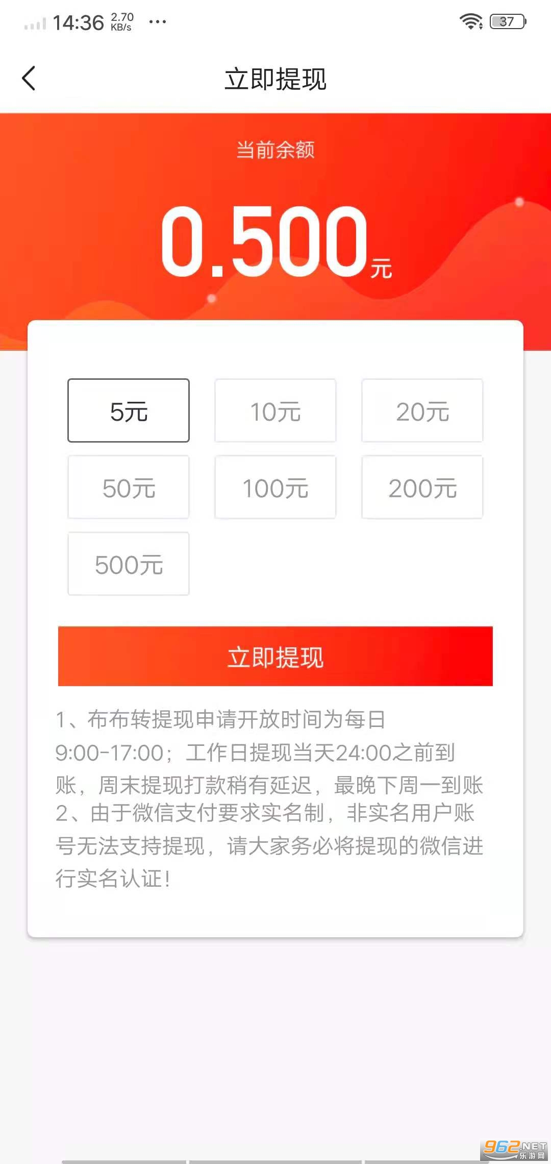 3、布布转首次满5元即可提现,后续满10元起提现,24小时内审核到账,每人每天限提一次