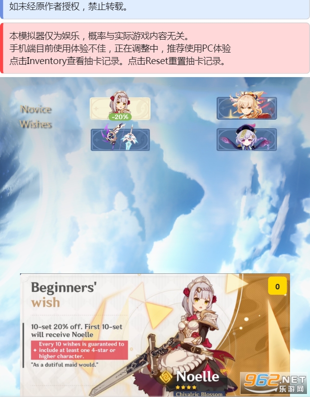 本模拟器仅为娱乐,概率与实际游戏内容无关。