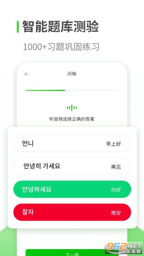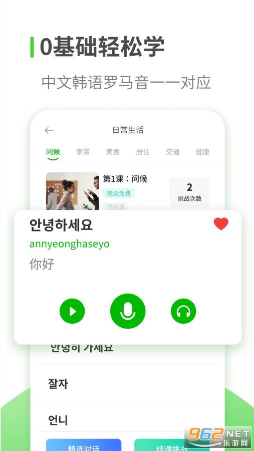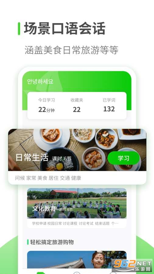 韩语学习是一款零基础学韩语的应用,拥有精编韩语课程,用户每天都能在线免费学韩语,快速掌握韩语发音,让想学习韩语的朋友快速学懂,另外它还有翻译功能,直接语音转文字或者文字转语音,使用起来相当方便。