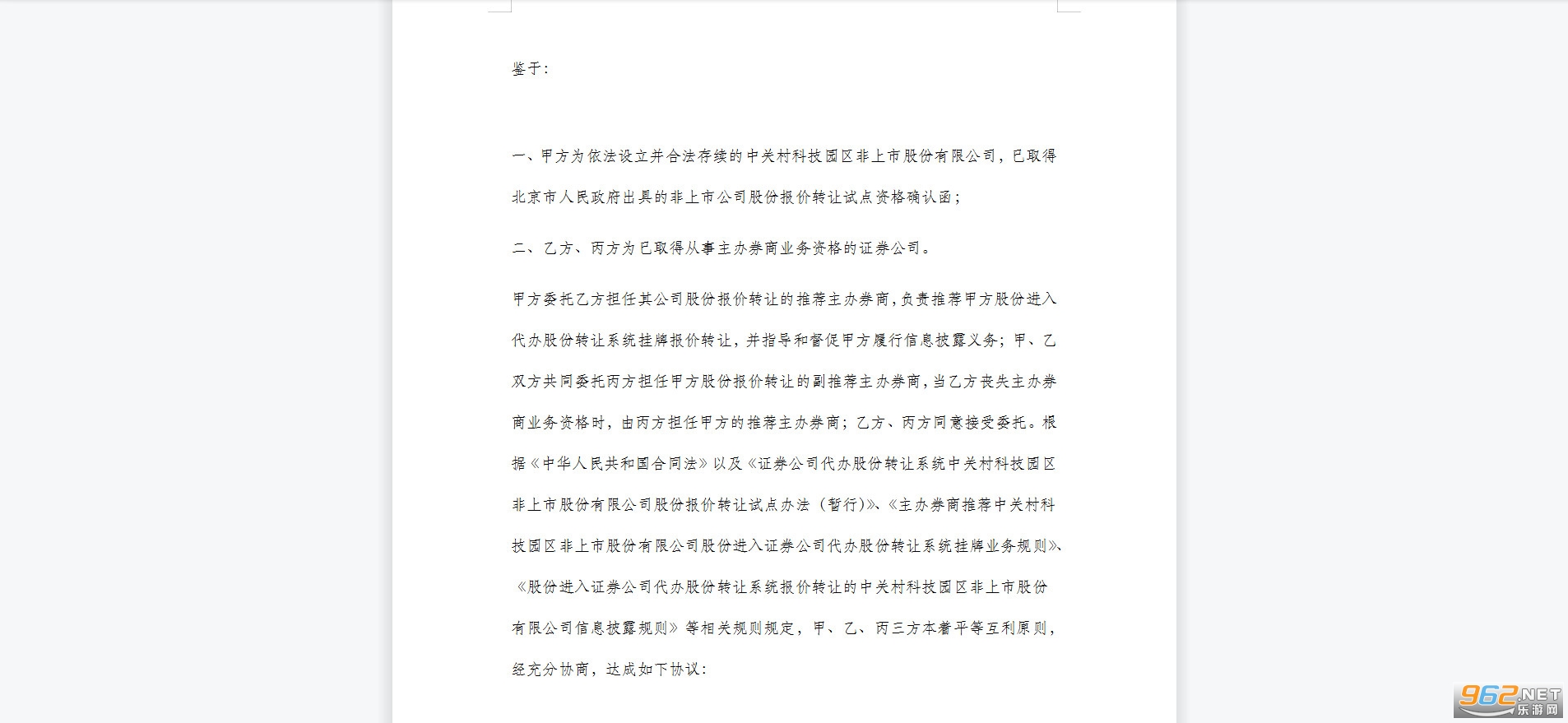 (八)《推荐挂牌规则》:《主办券商推荐中关村科技园区非上市股份有限公司股份进入证券公司代办股份转让系统挂牌业务规则》;