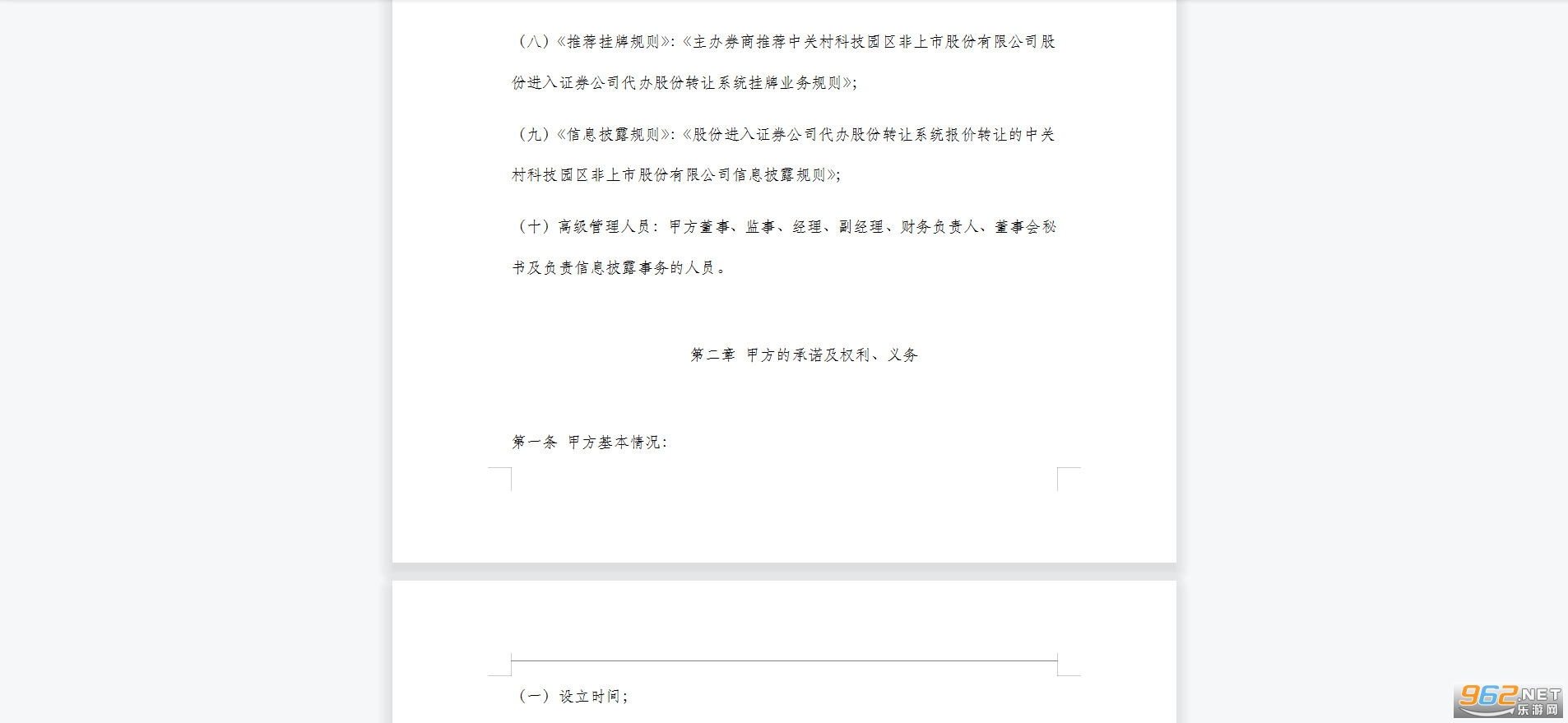 (九)《信息披露规则》:《股份进入证券公司代办股份转让系统报价转让的中关村科技园区非上市股份有限公司信息披露规则》;