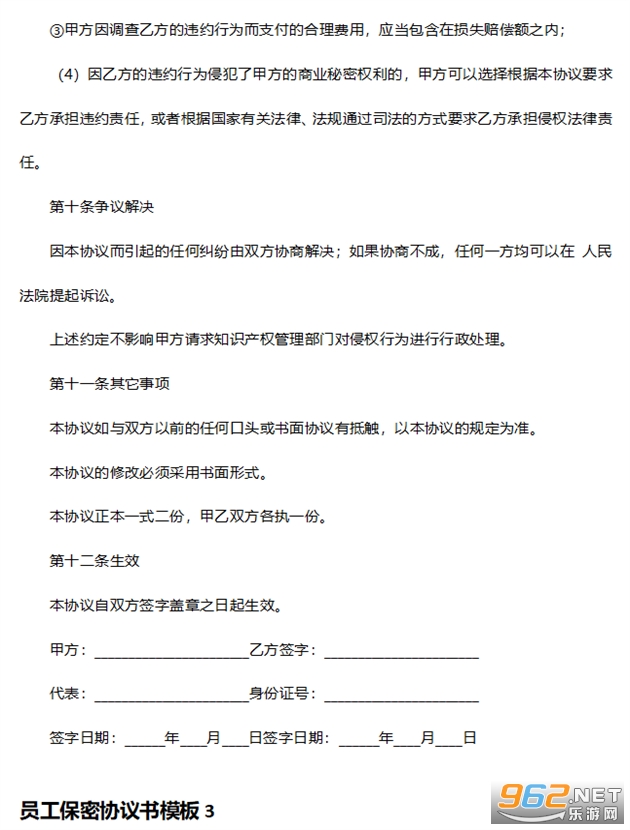 员工保密协议书模板3